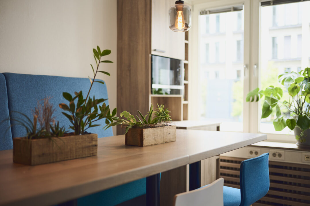 Wir glauben, dass gute Zusammenarbeit Räume braucht, in denen Austausch ganz selbstverständlich möglich ist. Deshalb arbeiten wir in Zweierbüros – groß genug für Ruhe, nah genug für Teamgeist. In unserer Küche und im Lounge-Bereich treffen wir uns zum Mittagessen, zum Gespräch zwischendurch oder auch mal für ein gemeinsames Anstoßen, wenn es etwas zu feiern gibt.