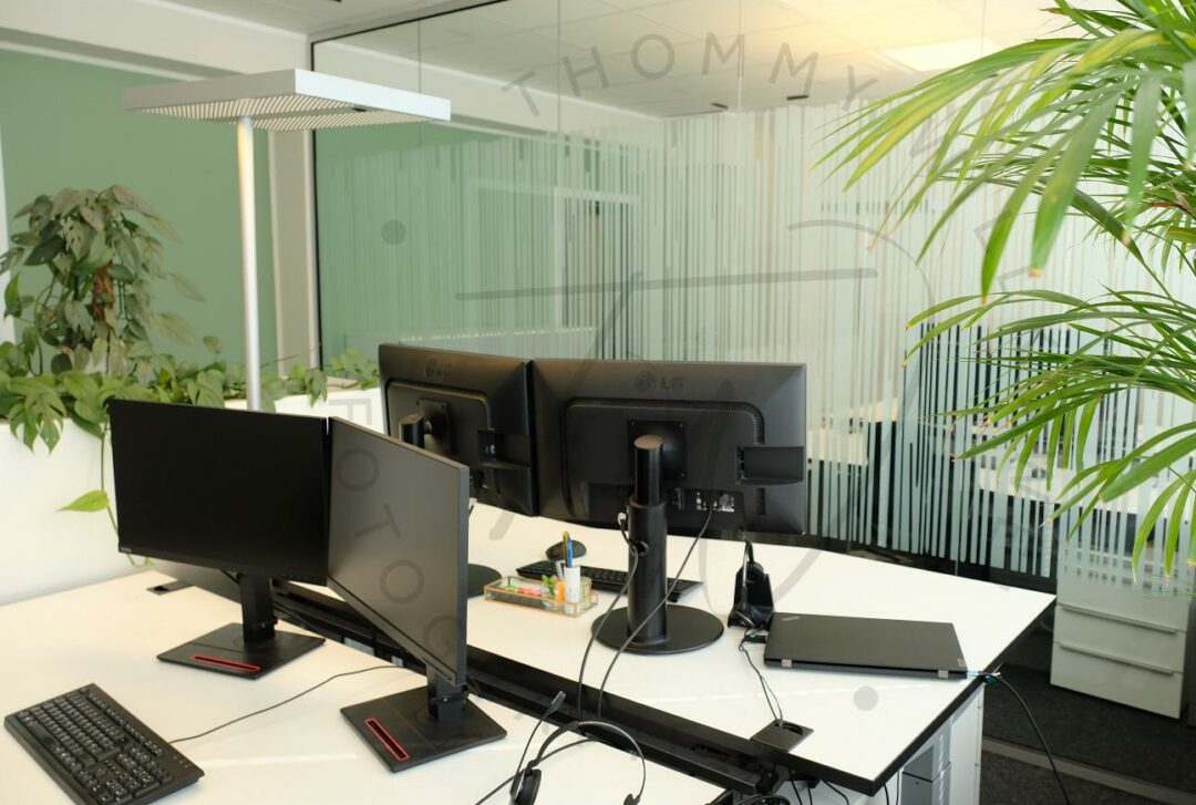 Bei der Einrichtung haben wir bewusst auf Qualität und Wohlbefinden geachtet. Glaswände sorgen für Licht, Grünpflanzen für eine angenehme Umgebung, und die Klimaanlage für ein gutes Arbeitsklima – im wahrsten Sinne des Wortes. Jeder Arbeitsplatz ist ergonomisch ausgestattet, mit höhenverstellbaren Tischen und moderner Technik.