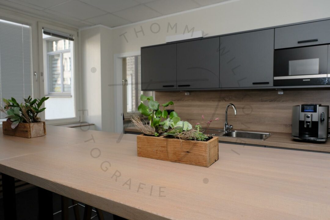 Wir glauben, dass gute Zusammenarbeit Räume braucht, in denen Austausch ganz selbstverständlich möglich ist. Deshalb arbeiten wir in Zweierbüros – groß genug für Ruhe, nah genug für Teamgeist. In unserer Küche und im Lounge-Bereich treffen wir uns zum Mittagessen, zum Gespräch zwischendurch oder auch mal für ein gemeinsames Anstoßen, wenn es etwas zu feiern gibt.